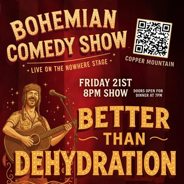 Nowhere Pizza (map) 760 Copper Road Frisco, CO, 80443 United States ✚ gCal ✚ iCal Nowhere Pizza’s Bohemian Comedy Show is back. This isn’t just stand-up. It’s an all-out, true Bohemian spectacle.Orange peel is performing comedy music for the occasion.GET TIX