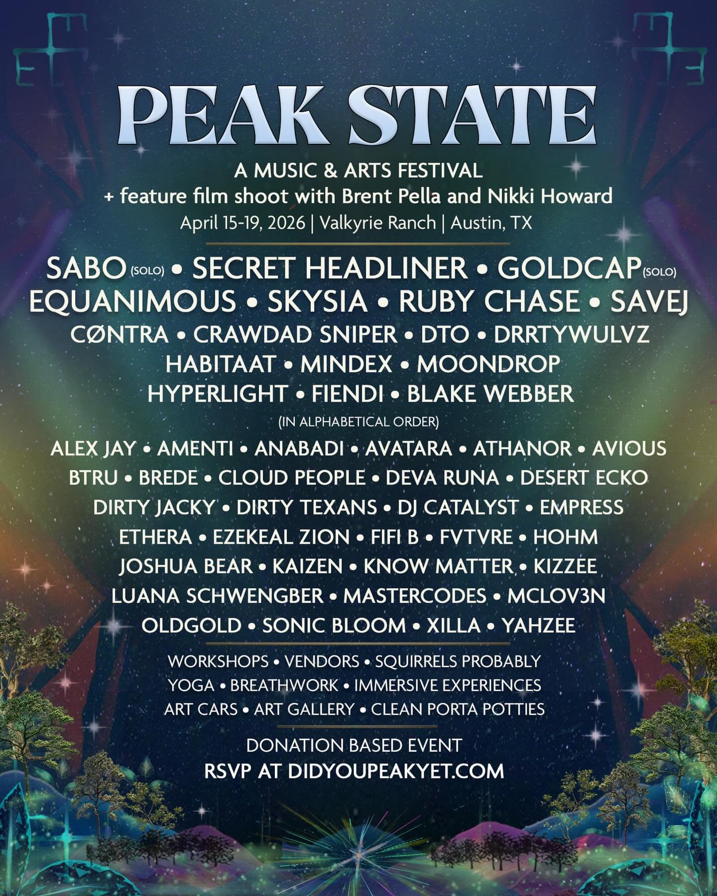 Peak State is a community-powered experience — part music festival, part collective artistic expression, all living film set. By participating in this project, you are telling a story that’s never been told.